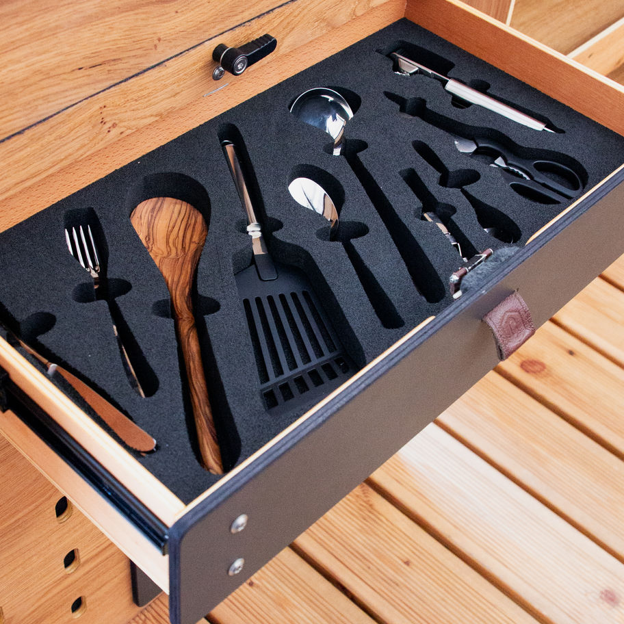 alles in einem passenden Einlegeschaum, sorgt für Ordnung und vermindert Geräusche beim Fahren